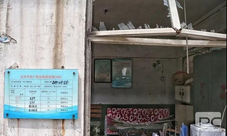 廠區內的巡檢工休息室外,氣化廠職業危害監測牌依然懸掛。