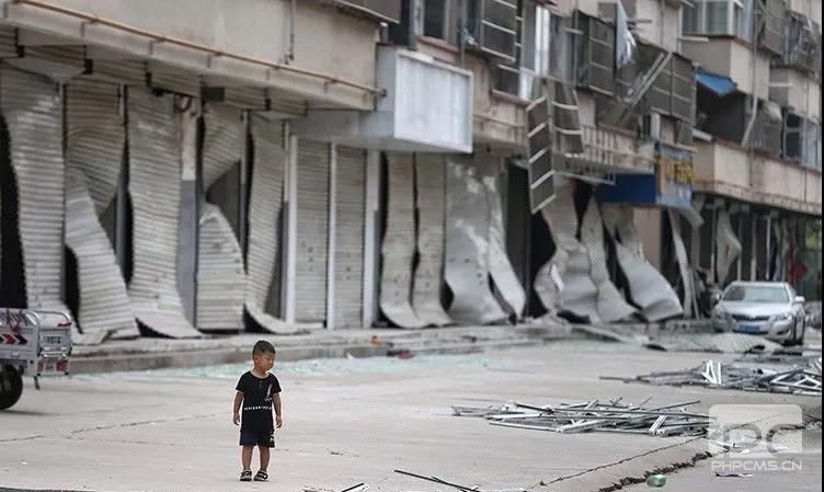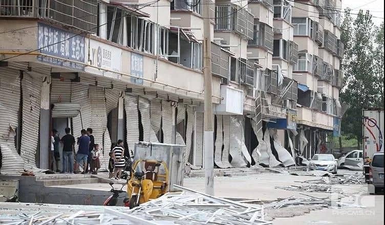 廠區附近街道,居民樓底層的卷簾門全部扭曲變形。