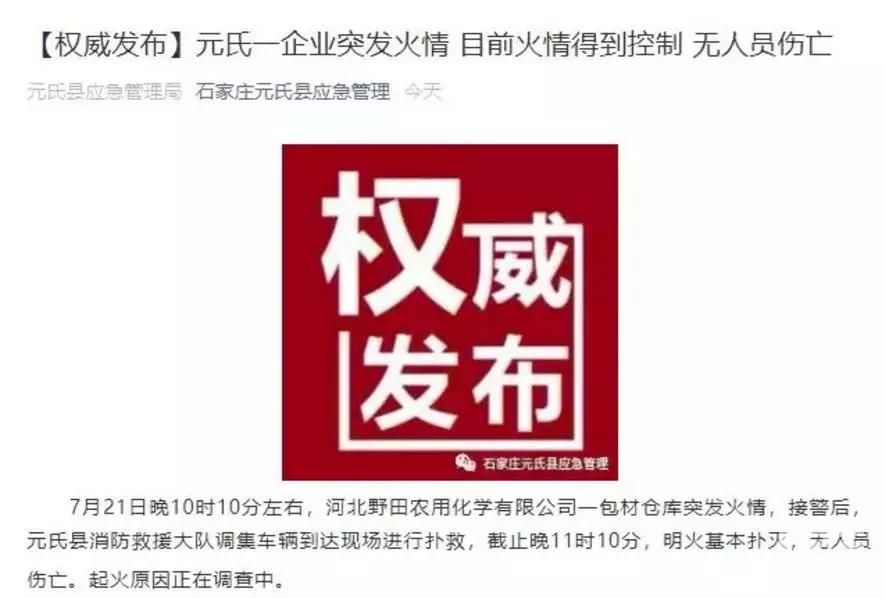 7月21日晚上10點10分左右,河北野田農用化工有限公司一包材倉庫突發大火,現場火光沖天。起火地點位于石家莊元氏縣,當地消防救援大隊接到報警后火速調集車輛到達現場進行撲救,截止當晚11點10分,明火基本被撲滅,未發現人員傷亡。目前起火原因等待官方進一步調查。