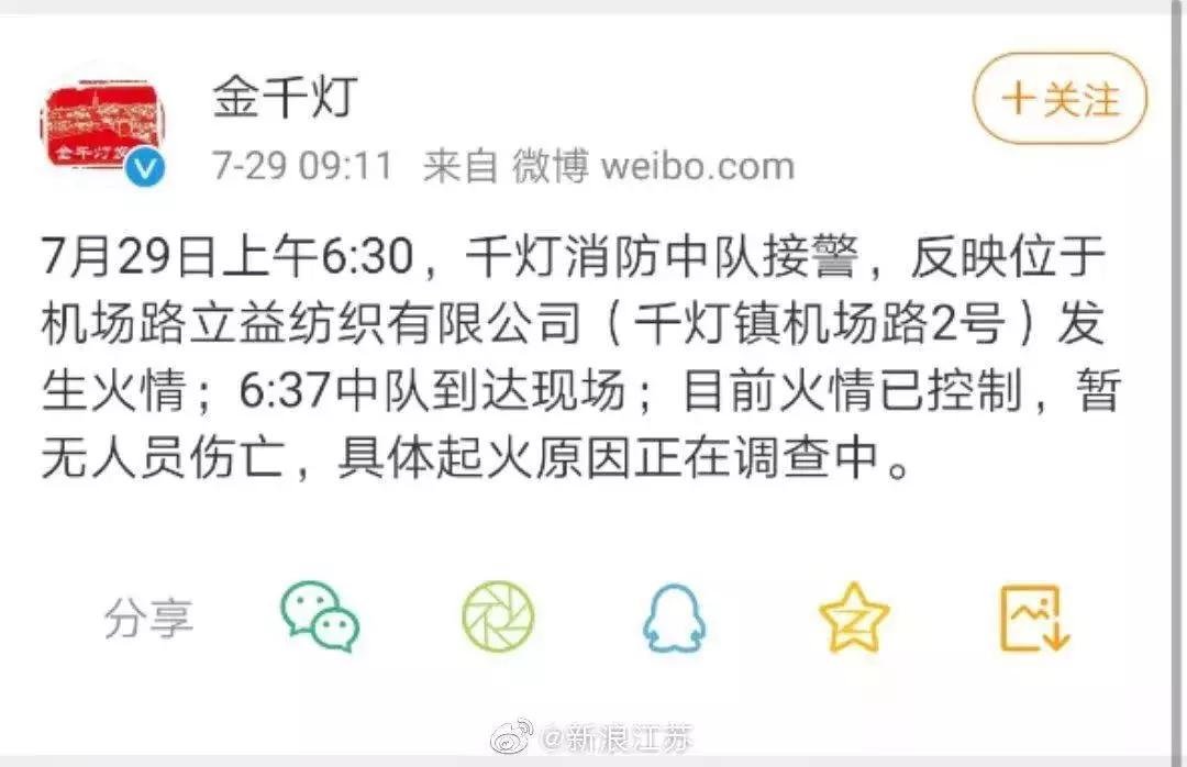 昆山立益紡織有限公司的一工作人員告訴記者,他今天上午接到起火的通知,趕到了園區。據其介紹,起火點為紡織公司出租出去的一處廠房,面積約2000平方米,2017年出租后變為了玻璃廠。該廠一名負責人介紹,燃燒的是泡沫粒子,濃煙比較大。目前大火已被撲滅,事發時無人在場,并無人員傷亡情況。