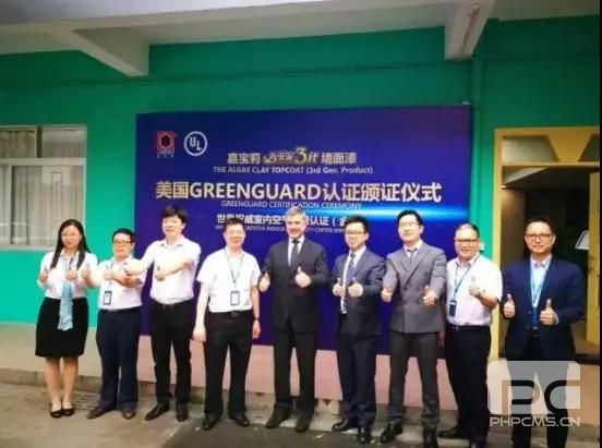 2017年4月11日,美國GREENGUARD認證頒證儀式在嘉寶莉集團總部舉行,嘉寶莉集團家裝漆事業部副總經理羅志清接受了美國UL公司全球副總裁Carlos Correia頒發的綠色衛士金級證書,寓意著嘉寶莉成為了國內首家產品獲得UL室內空氣質量認證的涂料企業。