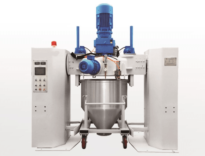 除了過程智能化以外,FHJ系列翻轉式自動混合機還具有自動除塵,自動定位、提升和鎖緊的特點,維護方便,能夠實現PLC/HMI自動控制。操作中多料斗連續循環作業,換色清機方便,混合快速,效果均勻。攪拌頭可配置冷卻水套供客戶選購。