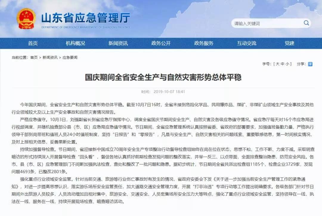 十一期間,山東省應急管理廳采取明查暗訪的形式持續深入開展督導檢查“回頭看”,督促各地認真抓好前期檢查發現問題的整改落實,并舉一反三、以點帶面,全面排查整治隱患,防范安全風險。各市、縣(市、區)應急管理部門不間斷加強執法檢查,查處和整改了一批問題和隱患。據初步統計,節日期間山東全省共派出檢查組1185個,檢查企業3729家,發現問題4693條,已整改2801條。