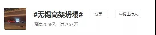 此次312無錫高架橋垮塌事故的發生,可謂是一石激起千層浪,事故發生不到24小時,微博熱搜#無錫高架坍塌#閱讀量超過25億,討論數量超過57萬,其中不乏建筑、設計等專業的業內人士和各行業群眾。對于事故原因的討論也非?;馃?,主要集中在道路設計原因,工程質量問題和車輛超載等幾個方面。