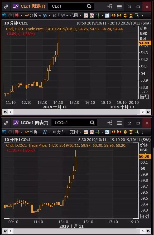 隨著沙特和伊朗接連出現的襲擊事件,中東局勢緊張程度持續升溫,尤其是伊朗和沙特的關系。這無疑對國際油市造成巨大沖擊,不僅危及到了全球的石油供應,還引發了國際原油價格上漲?! ?0月11日北京時間13:30,美國WTI原油、布倫特原油漲逾1%,WTI原油站上54美元/桶,布倫特向上觸及60美元/桶關口,刷新10月1日以來新高。上海原油期貨主力合約大漲4%。截至15時,記者截稿,布倫特原油價格漲幅達2.07%,美國原油價格漲幅1.85%,上海原油期貨價格漲幅3.27%。