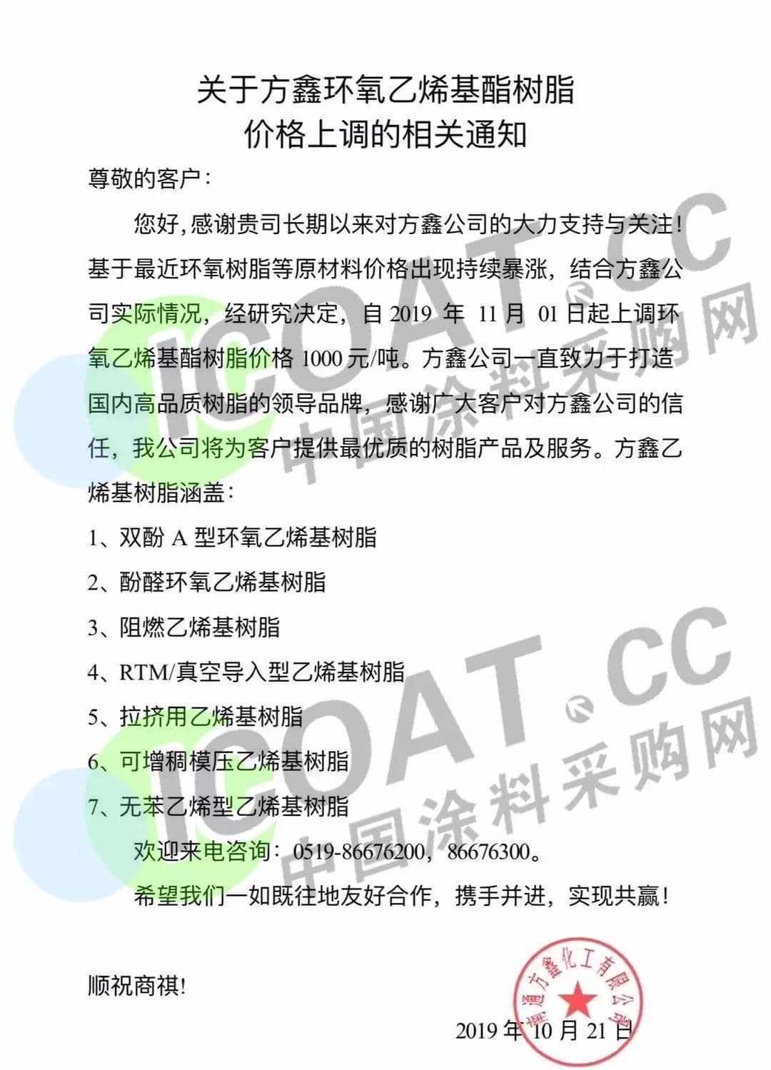 據涂料采購網了解,近期環氧樹脂漲價非常迅猛,在環氧氯丙烷大幅上漲的助推下,環氧樹脂價格大幅上行至約24000/噸,上漲幅度達到約2000元/噸,創去年以來的新高,接近歷史最高水平。 10月17日部分環氧樹脂企業發布通知稱,因環氧氯丙烷供應緊張,價格持續上漲,對企業的運行造成了很大的影響,因此即日起開始限量供應。而在此前一天,10月16日安徽歙縣循環經濟園區也曾發布通知稱集中脫鹽強制循環泵預估計要停產4天左右。據安徽歙縣某環氧樹脂企業負責人稱,之前確實有出現停產情況,但現在已經恢復正常生產,其還稱停產期間也在正常接單和發貨。 據涂料采購網了解,就安徽黃山地區來說,歙縣環氧樹脂企業的數量占黃山總數的65%左右,因此歙縣的此次短暫的停產,對于環氧樹脂的市場總量來說,還是造成了一定的影響。但這種影響似乎并沒有傳導到下游粉末涂料等企業,原因是大型企業通常都有一定量的囤貨,且為了合作事宜,環氧企業也大多會把貨物優先供給大型企業,而對于小企業來說,則會出現不同程度的限產。某環氧樹脂企業負責人表示,會盡量保證供應正常,凡是前期合同約定好的都會保證供應,價格會根據具體情況采取一定的變化措施(漲價),因此總的來說,環氧樹脂對于其下游的粉末涂料、電子、復合材料等企業并沒有造成什么連鎖的影響。 環氧樹脂原料企業陸續進入停產季,11月份價格將繼續飆漲 那么環氧樹脂企業漲價究竟是什么原因呢?又會不會繼續漲價呢?據業內人士稱,時值年底,近期東營聯成,東營赫邦,以及環氧樹脂龍頭企業江蘇揚農等企業均有檢修計劃,部分已經停車檢修,預計近期價格下跌可能性不高。 除了本月20日開始的江蘇長春一條線環氧樹脂壓力管道檢測到11月底外,本月底南通星辰因園區蒸汽問題降負荷,11月1日全線停車檢修半月多,預計11月18日出產品;揚農錦湖計劃檢修延期到11月7日,停產檢修十天,與南通星辰幾乎同時出產品,開機后可能只有50%的負荷直至年底(安全整改)。在這期間,有其他可能的突發事件造成停產忽略不計。目前各廠都開著尚且供貨緊張,屆時三四家工廠停產斷供,可能會影響市場供需平衡。 據山東海力相關負責人表示:目前山東海力正處于檢修期,復產時間還沒有確定。再結合南通星辰、揚農錦湖等環氧氯丙烷企業11月份的檢修計劃,市場供應還會出現一定程度的緊張局面。 某化工企業負責人表示,目前環氧樹脂毛利約4000元/噸,近期環氧樹脂的漲價情況屬于供給端漲價,亞洲最大環氧氯丙烷企業山東海力已經停產了一段時間,直接導致環氧氯丙烷的市場供給出現緊缺的狀況。至于年末的檢修,基本也屬于正常情況,不會造成太大的影響,他們行業內部也有不少人猜測,近期的大規模漲價是否是有人在炒作。現在的環氧樹脂已經是一天一個價,隨著年末臨近,預計11月起,價格還會繼續提高。 據某環氧樹脂企業負責人稱,目前他們的庫存量較少,不僅是企業,而是整個環氧樹脂的市場庫存都較少,前期有部分下游企業已經定了許多環氧樹脂,但工廠出貨緊張還有很多訂單沒有生產出來,導致有訂單無現貨,連一些大廠子也出現捉襟見肘的情況,紛紛開始惜售。他表示環氧樹脂不僅數量會變得很緊張,價格也會在11月份開始大量漲價,至于下游企業會不會照單全收,亦或是市場遇冷,就無從得知了。
