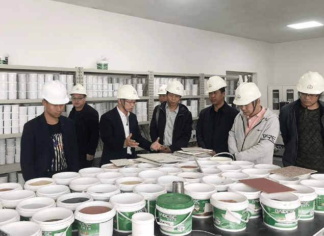 黃陵縣城投公司考察團(tuán)作為成都巴德士的重要貴賓,方總充分發(fā)揮主人翁精神,并帶領(lǐng)考察團(tuán)一行參觀了巴德士展廳。作為本次考察重點(diǎn)關(guān)注的外墻工程漆,其色彩穩(wěn)定、高端質(zhì)感等特點(diǎn)深受來(lái)賓們的關(guān)注,通過(guò)細(xì)致觀摩各種類型外墻涂料的樣板,雙方對(duì)仿真度極高的真石漆、多彩漆作深入的交流了解。