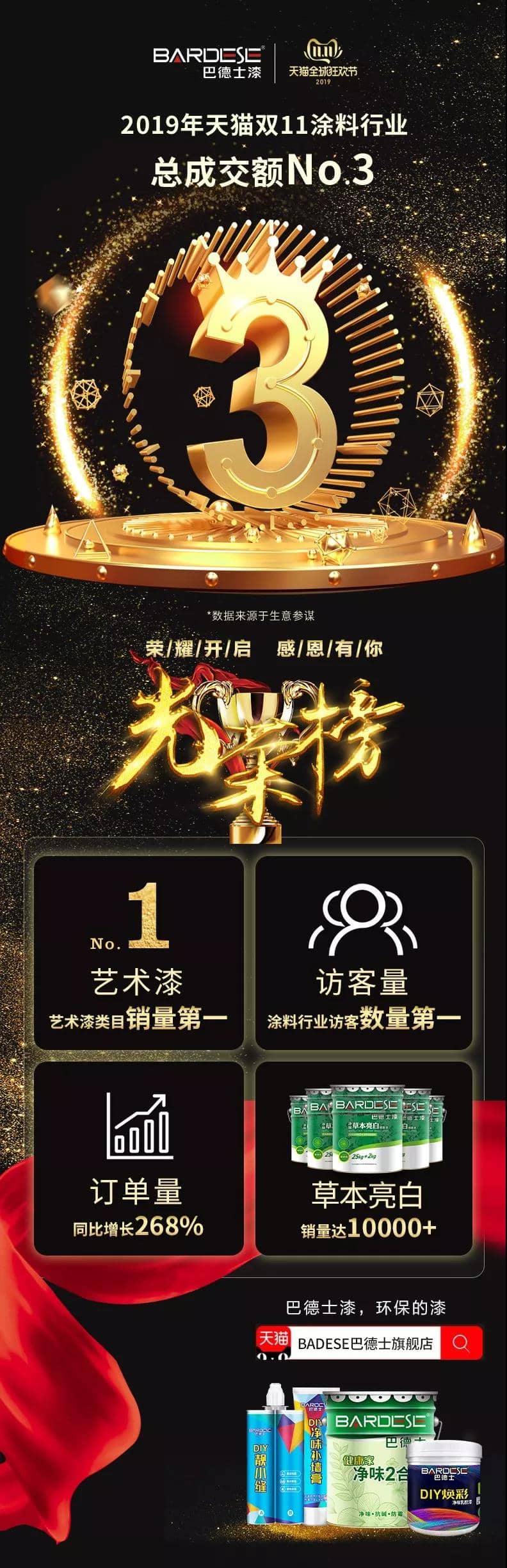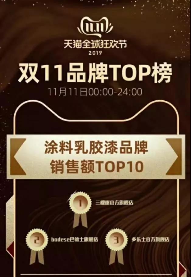 榮登雙11涂料乳膠漆品牌銷售額 NO.2