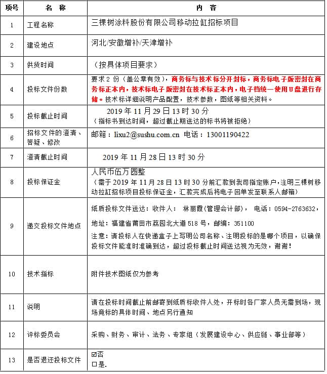 三棵樹安徽工廠/河北工廠移動拉缸項(xiàng)目,詳情如下。