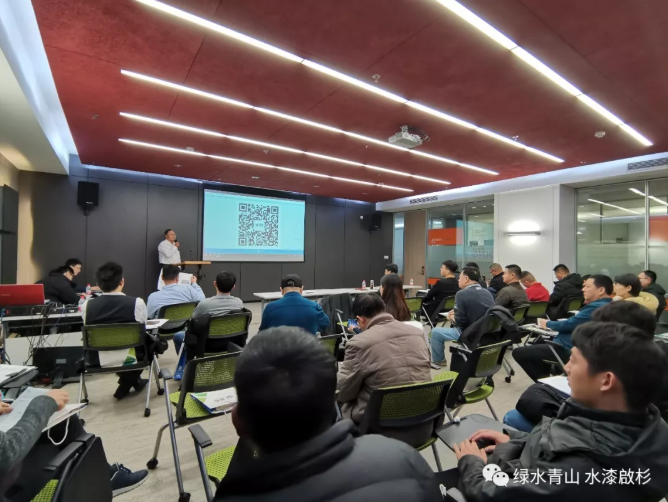 青山環保產品副總牛玉坤(上圖)進行了啟杉水漆產品介紹,包括以下幾個方面:產品應用領域、性能指標、優異性、主推熱點、產品配套應用案例、原有產品改進優化、半成品及新產品的開發。