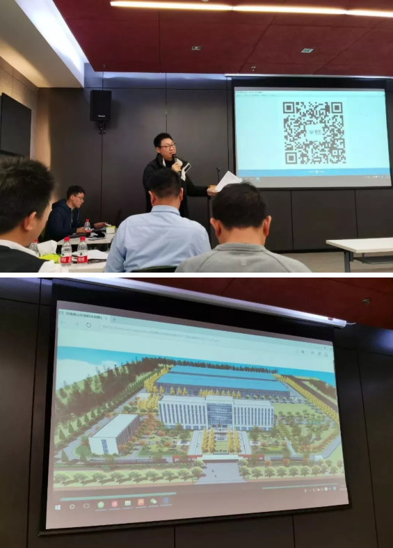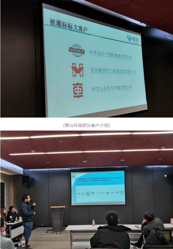 青山環保總經理助理兼啟嶺工程公司常務副總路東亞(上圖)介紹在董事長朱新峰的帶領下全產業鏈布局,旗下各子公司目前的發展史和目前的發展情況,國家的政策支持,產品檢測,技術服務等。