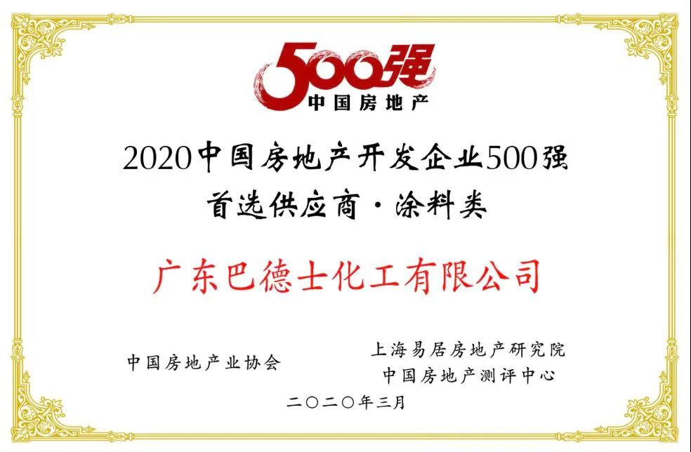 峰會同時揭曉了《2020中國房地產(chǎn)開發(fā)企業(yè)500強(qiáng)測評報告》和《2020中國房地產(chǎn)開發(fā)企業(yè)500強(qiáng)首選供應(yīng)商服務(wù)商品牌測評報告》。廣東巴德士化工有限公司榮登“2020年中國房地產(chǎn)開發(fā)企業(yè)500強(qiáng)首選供應(yīng)商•涂料類”榜單,實現(xiàn)連續(xù)第7次蟬聯(lián)該榮譽(yù)榜。
