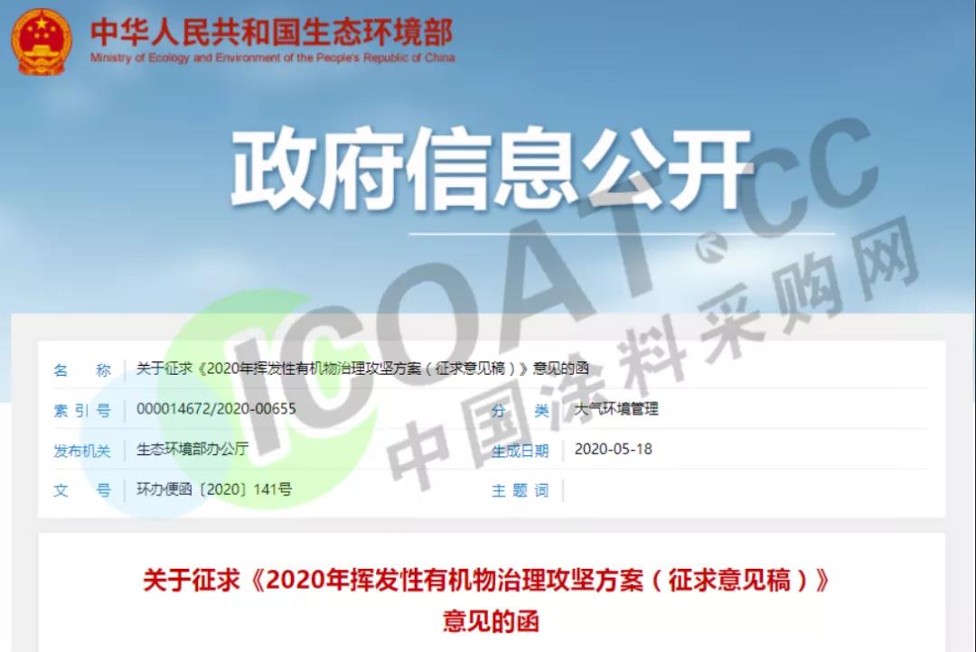 據涂料采購網不完全統計,已經有20余個省市地區發布了有關揮發性有機物(VOCs)的治理相關文件,因地制宜采取了限時噴涂、調序生產、取締不合規噴涂作業,禁止新、改、擴建生產和使用高VOCs含量的溶劑型涂料、油墨、膠粘劑的企業項目,推進工業、建筑、汽修等行業使用低(無)VOCs含量原輔材料和產品等多種措施,為打贏污染防治攻堅戰全力前進。近期生態環境部發布的2020年揮發性有機物治理攻堅方案(征求意見稿)中,也明確要求全面加強 VOCs 綜合治理,推進產業轉型升級和經濟高質量發展,通過采取綜合措施,切實提升 VOCs 治理能力,實現 VOCs 排放量明顯下降。