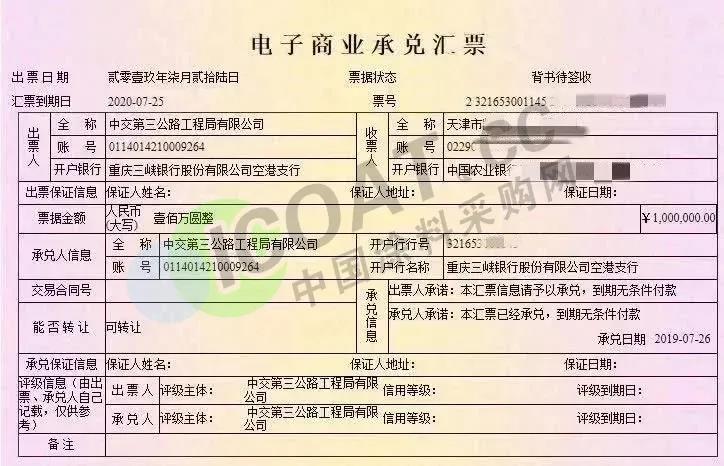 2019年10月中建八局發布聲明稱,有不法分子涉嫌偽造中建八局證照及相關資料,采用虛假手段冒用中建八局名義開立銀行賬戶,并冒用八局名義虛假開具商業承兌匯票,自2018年7月1日起,中建八局或下屬分子公司已全面停止對外開具電子或紙質商業承兌匯票。凡是出票日在2018年7月1日以后的,以中建八局或下屬分子公司名義開具的電子或紙質商業承兌匯票均為冒名或偽造票據。