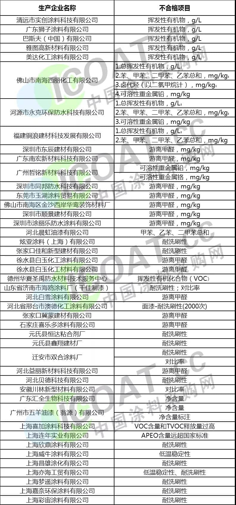 在涂料行業(yè),高質(zhì)量發(fā)展將是涂料行業(yè)做強(qiáng)的必經(jīng)之路,但是幾乎每次的質(zhì)量抽查都會(huì)發(fā)現(xiàn)很多涂料產(chǎn)品質(zhì)量不合格,這里面包括了技術(shù)、質(zhì)檢等各個(gè)環(huán)節(jié)的問題。據(jù)涂料采購(gòu)網(wǎng)了解,2020年開年至今,涂料行業(yè)一些質(zhì)量不合格的生產(chǎn)企業(yè)抽查結(jié)果如下: