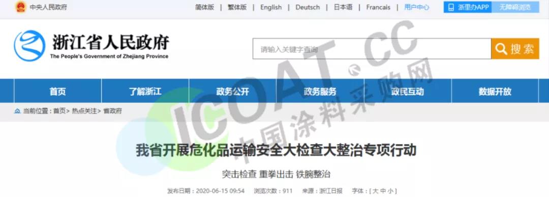 6月14日下午,浙江省政府召開全省危化品道路運輸行業(yè)安全管理緊急工作會議,要求各級交通運輸系統(tǒng)領導要深入一線督導,突擊檢查、重拳出擊、鐵腕整治,迅速開展危化品運輸行業(yè)安全大檢查大整治專項行動,全面查找薄弱環(huán)節(jié),嚴防再次發(fā)生此類事故。