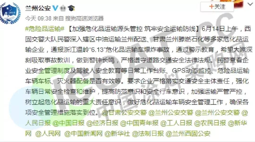 為深刻汲取浙江溫嶺“6·13”槽罐車爆炸事故教訓,切實做好危化品道路運輸安全生產(chǎn)工作,防范類似事故發(fā)生,山西省迅速采取措施,全面開展危化品道路運輸安全隱患排查整治行動,6個工作組將進行為期半個月的督導檢查。