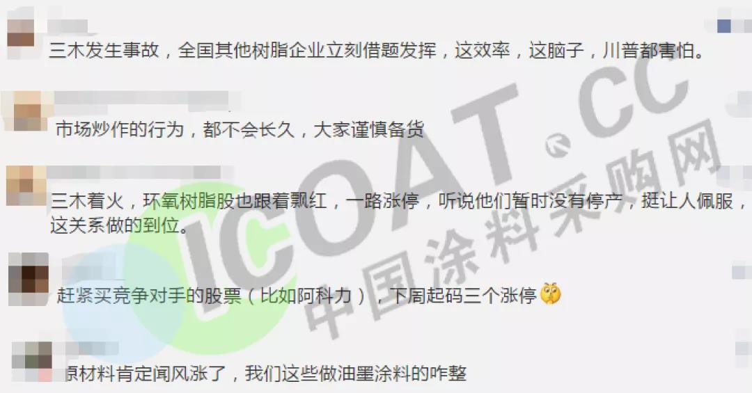 事故的處理程序自然要按照法律法規(guī)來執(zhí)行,但由于一直沒有官方通報(bào)公示,行業(yè)人士對(duì)于事故的討論熱度持續(xù),且有愈演愈烈之勢。畢竟三木化工在樹脂行業(yè)位居龍頭地位。