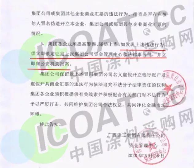 2020年5月,廣西建工集團有限責任公司發布了《關于不法分子假冒集團公司名義開具商業匯票的情況告知》的公告,稱廣西建工集團發現有不法分子涉嫌偽造集團公司印章、證照及相關資料,冒用集團公司名義開立銀行賬戶,并通過虛假銀行賬戶冒用集團公司名義虛假開具商業匯票,特進行澄清。
