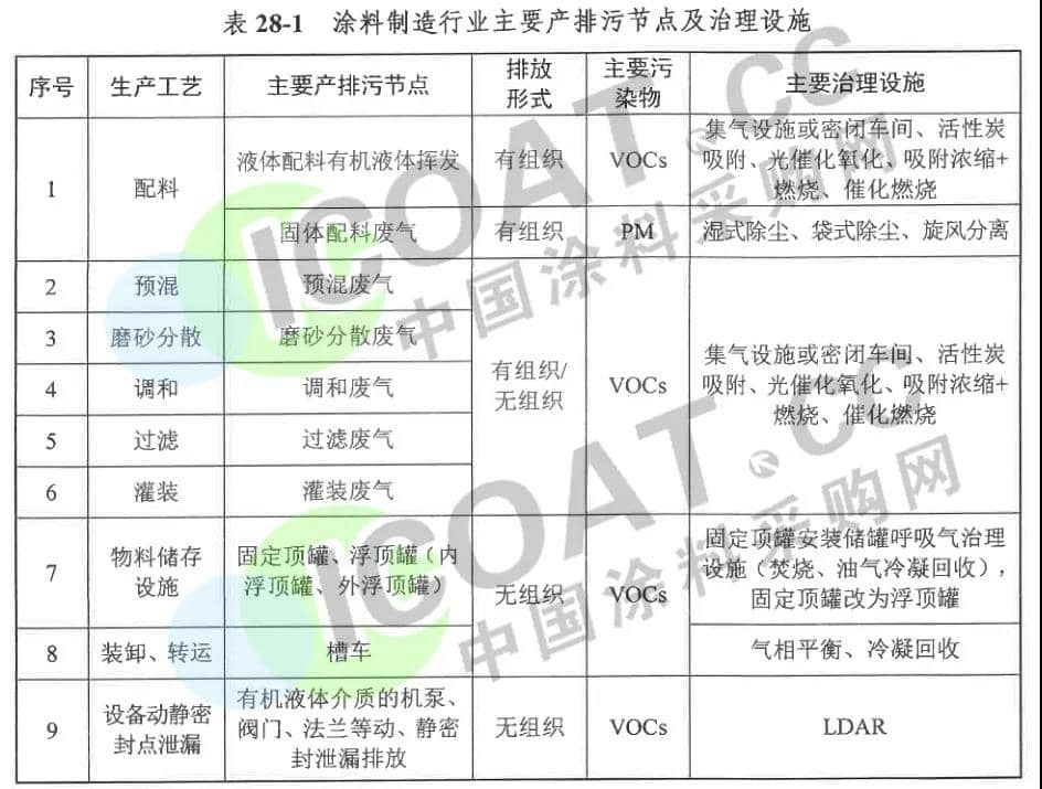 (2)VOCs:主要來自配料、預混、磨砂分散、調和、過濾、灌裝、物料儲存設施、裝卸、轉運、設備動靜密封點泄漏等工序。