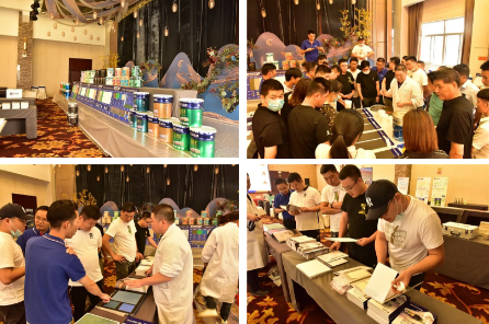 發布會現場氣氛熱烈,展臺前經銷商伙伴對久諾無機產品興致勃勃