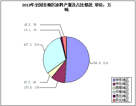 從涂料的生產和應用水平來說,華北地區是中國涂料生產和應用的發源地,然而,從我們統計的數據來看,2013年華北地區只能屈居第三位。中國涂料采購網認為,華北地區雖然是中國涂料生產地和應用發源地,但是華北地區缺少大型涂料生產企業的支撐,中小型企業不管是在技術和管理水平上都有所缺失,因此一旦環保力度加大,中小型涂料企業也只能進入“休眠”甚至“長眠”狀態。