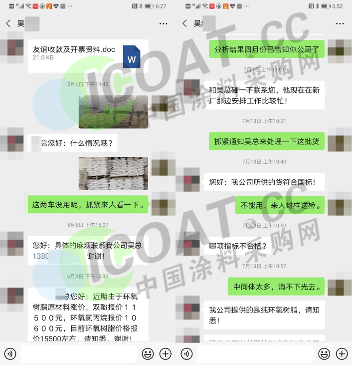 據涂料采購網了解,在發函之前,廊坊光亞曾在5月初與歙縣友誼化工業務人員進行溝通協商,因還有兩車純環氧樹脂沒有使用,要求歙縣友誼派工程師前來解決。