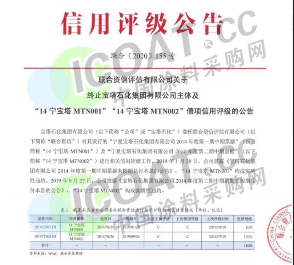在寶塔集團的兩只債券“14寧寶塔MTN001”、“14寧寶塔MTN002”均已構成實質性違約且無后續進展的情況下,聯合資信決定終止對寶塔集團主體及兩只債券的債項信用評級。而寶塔集團這家西部的民營能源巨無霸,如今已被列為失信被執行人。