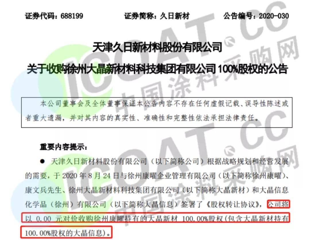 其還表示,本次轉(zhuǎn)讓完成后,大晶新材將成為久日新材全資子公司,大晶信息將成為久日新材全資孫公司,久日新材將通過股東借款或增資等方式為投資標(biāo)的注入資金5,300.00萬元,支持投資標(biāo)的償還債務(wù)。