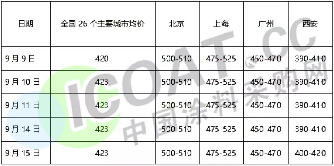 陶氏化學宣布自10月1日或合同允許時間起,在北美地區提高VORANATE品牌TDI產品所有等級和包裝類型的價格,漲幅0.05美元/磅;提高部分品牌MDI產品所有等級和包裝類型的價格,漲幅0.04美元/磅。