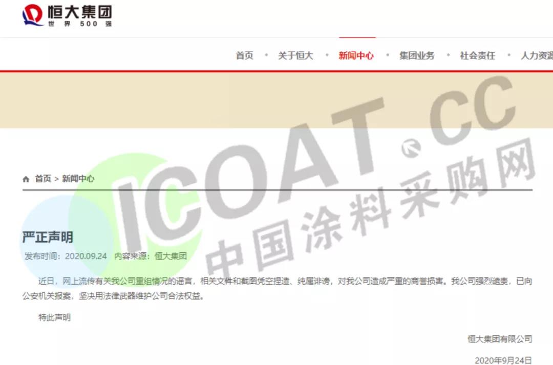 當(dāng)日晚間恒大地產(chǎn)在官網(wǎng)上發(fā)布聲明稱,網(wǎng)上流傳有關(guān)公司重組情況的報(bào)告是謠言,相關(guān)文件和截圖憑空捏造、純屬誹謗,對公司造成嚴(yán)重的商譽(yù)損害。恒大地產(chǎn)公司強(qiáng)烈譴責(zé),并已向公安機(jī)關(guān)報(bào)案,堅(jiān)決用法律武器維護(hù)公司合法權(quán)益。