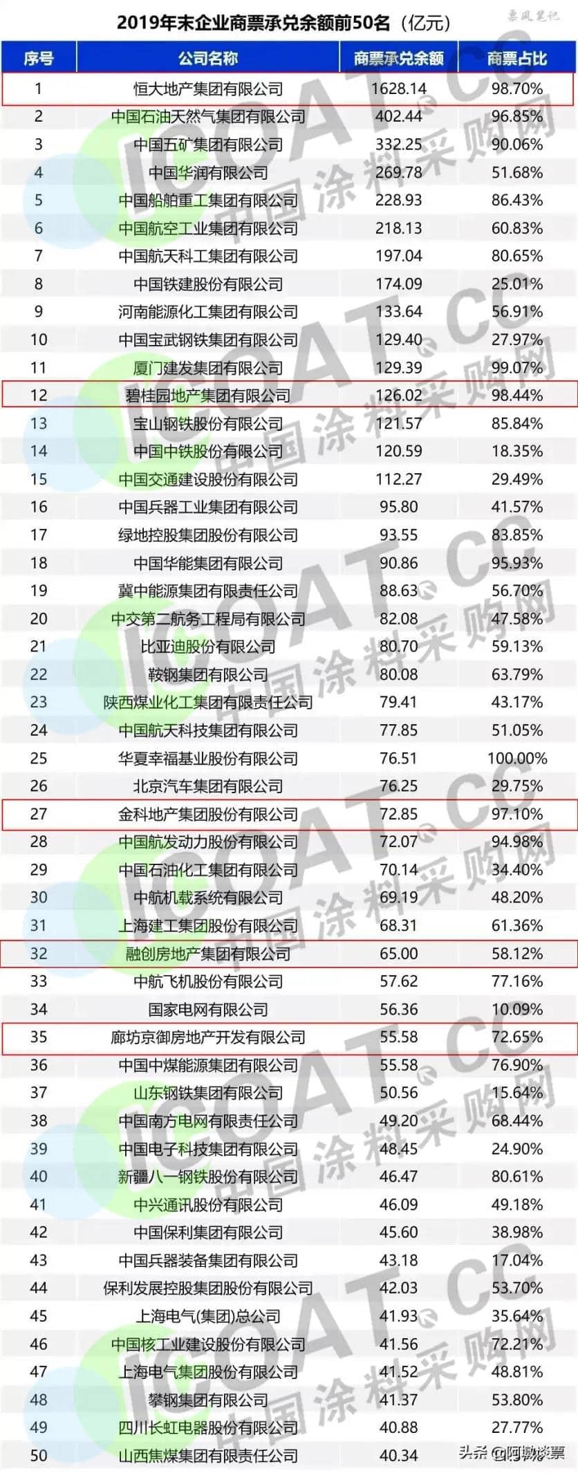 最新數(shù)據(jù)顯示,截至8月底,中國恒大累計(jì)實(shí)現(xiàn)銷售額4506.2億元,同比增長21.8%;累計(jì)合約銷售面積4934.3萬平方米,較去年同期增長約42.9%。截止到2019年末企業(yè)商票承兌余額恒大地產(chǎn)集團(tuán)有限公司排在第一位。碧桂園地產(chǎn)、金科地產(chǎn)、融創(chuàng)房地產(chǎn)、廊坊京御房地產(chǎn)等亦登入前50位。