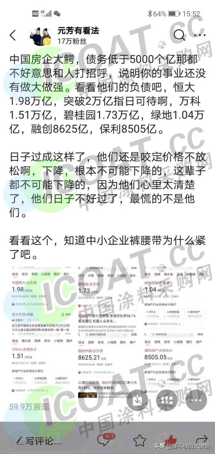 房地產(chǎn)是涂料行業(yè)的下游終端用戶,現(xiàn)如今,輝煌了幾十年的房地產(chǎn)行業(yè)突然暴雷,這對涂料行業(yè)也有一定的影響。