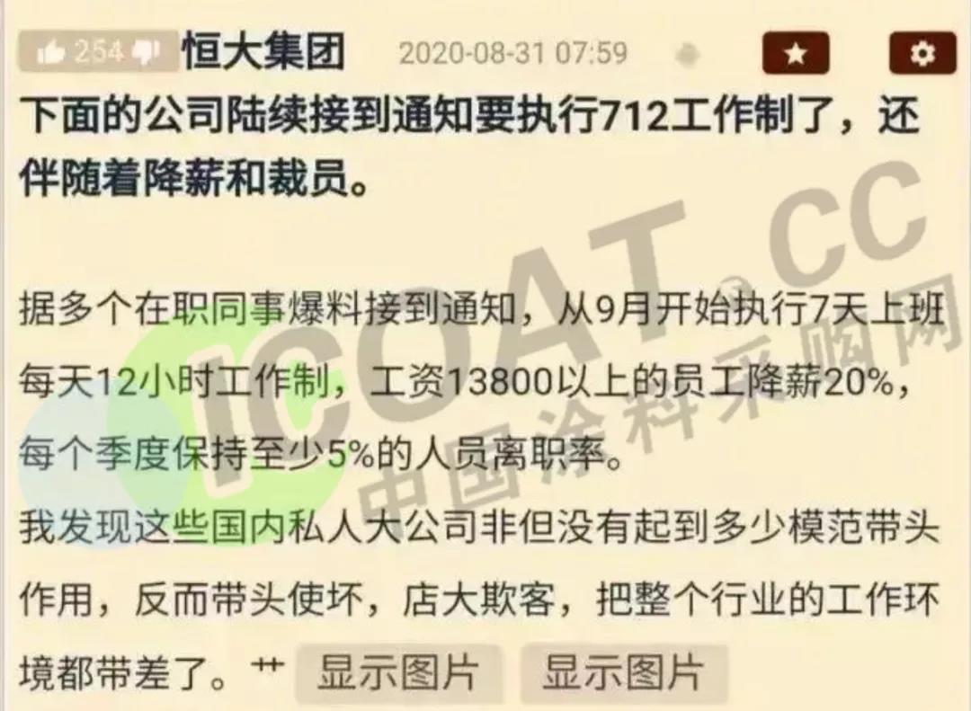 當(dāng)然,恒大地產(chǎn)的大動作還不只這些,網(wǎng)傳恒大集團(tuán)下面公司陸續(xù)接到通知要執(zhí)行712工作制,還伴隨著降薪和裁員。