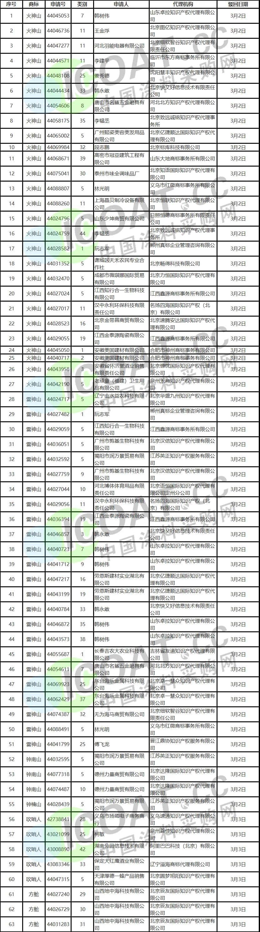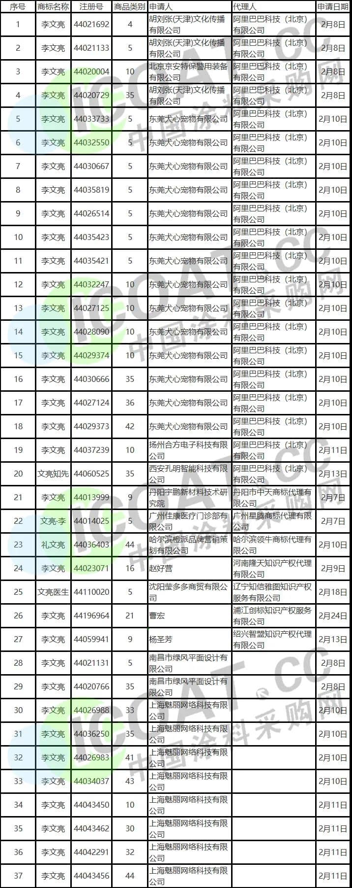 據涂料采購網了解,搶注“火神山”、“火神山醫院”以及“李文亮”商標并非首例。早在2月份就有37家企業搶注“李文亮”商標,63家企業及個人搶注“火神山”“雷神山”商標,被國家知識產權局商標局全部駁回。