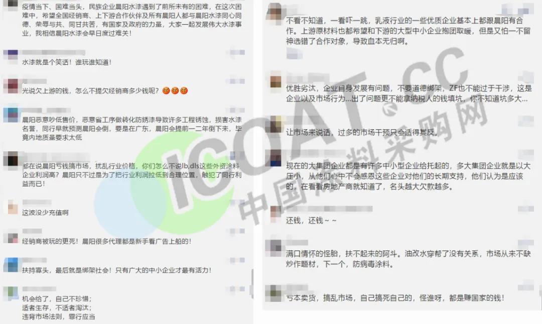 如果沒有遭遇疫情,沒有資金鏈斷裂,沒有被曝出欠款欠薪,也許晨陽目前還是那個大家心中火爆了20多年的水性涂料品牌。但此次晨陽遭遇的危機,能否安全度過,后期能否融資成功,不確定因素依然很大。
