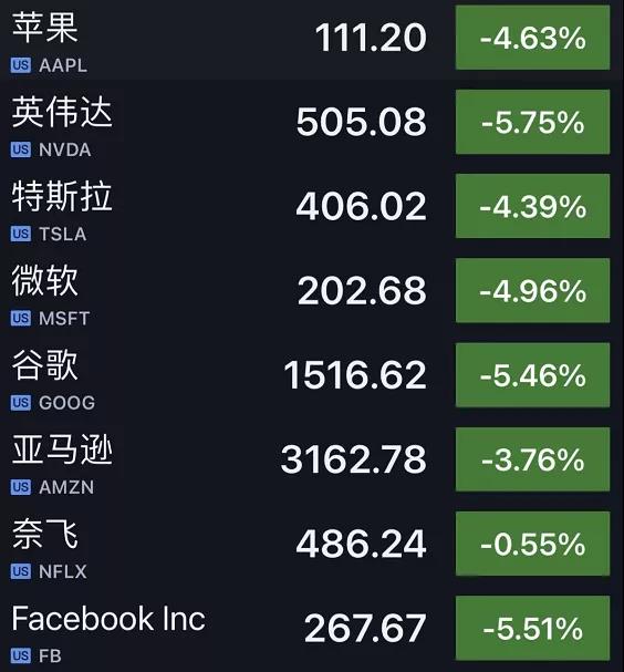 科技股領(lǐng)跌納指,英偉達(dá)跌超5.7%,谷歌、推特、微軟均超5%,蘋(píng)果跌逾4.6%。