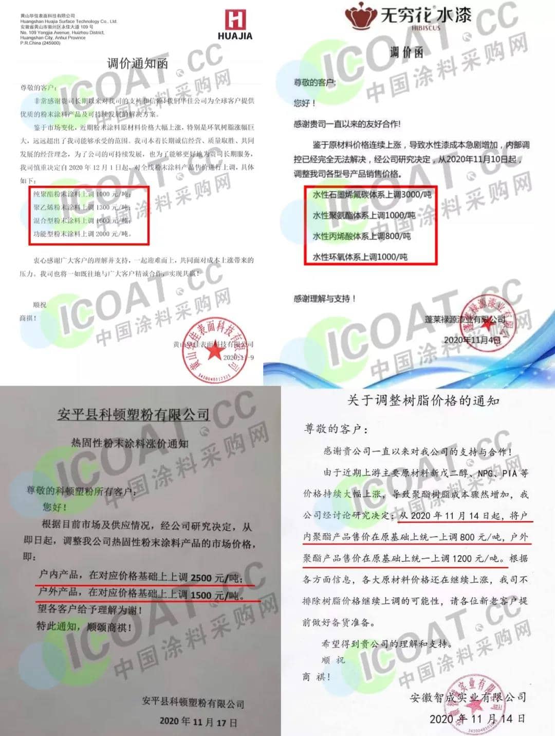 眾多化工原材料和化工品自三季度開始普漲,漲勢全面拉開之后逐漸“失控”,四季度以來不僅全線拉漲,且漲勢驚人。粉末涂料調(diào)漲達(dá)2500元/噸,水性涂料調(diào)漲高達(dá)3000元/噸,ABS國產(chǎn)料調(diào)漲4000-6000元/噸,PC市場日漲幅再次高達(dá)2200元/噸,雙酚A一周之內(nèi)價(jià)格漲幅超3000元/噸……樹脂、乳液、固化劑、膠類、有機(jī)硅產(chǎn)品調(diào)漲近千元每噸,陶氏、巴斯夫、中遠(yuǎn)關(guān)西等巨頭也紛紛帶頭領(lǐng)漲。
