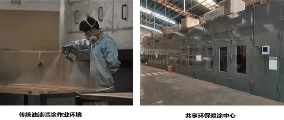 噴涂作業排污較為分散,尤其是家具企業分散涂裝,排污監管難度大,一旦無法有效監管,對于大氣環境造成的污染是無法挽回的;共享噴涂中心模式下,家具制造企業在自己工廠內完成板件的機加工處理,統一配送至共享中心進行環保噴涂表面處理,利用集中管理和行業監管。