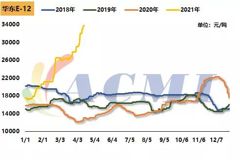 PVC:電石法華南地區(qū)綜合價(jià)格在8868元/噸,相比上月價(jià)格上漲了153元/噸,漲幅1.75%,PVC生產(chǎn)企業(yè)庫(kù)存降低較低水平,且當(dāng)前預(yù)售訂單較好,市場(chǎng)可流通貨源偏緊,下游終端開(kāi)工旺季,維持尋低補(bǔ)貨。