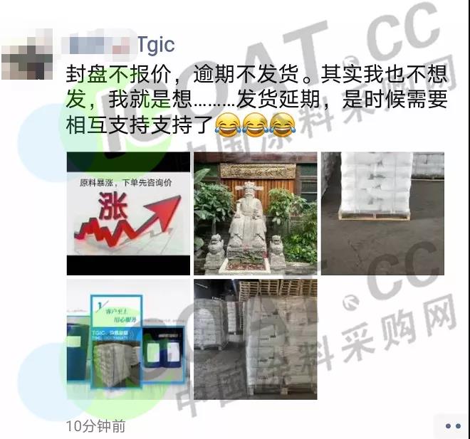 TGIC:21日,TGIC報價60000元/噸,較2020年低點價格上調23500元/噸,漲幅64.38%。TGIC廠家紛紛在朋友圈和社交平臺發布消息,稱目前封盤不報價,逾期不發貨,且發貨延期,現貨緊張。