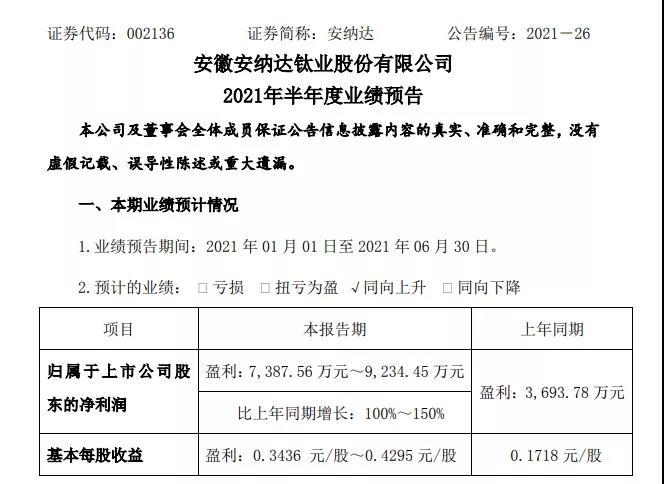 近日,A股公司安納達(或稱“公司”)發布2021年半年度業績預告。