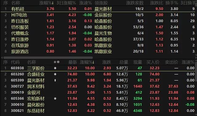 截至收盤,有機硅漲3.76%,其中三孚股份、合盛硅業(yè)、晨光新材漲停,潤和材料漲9.42%,金銀河漲5.06%,宏柏新材、晨化股份、東岳硅材漲超4%。