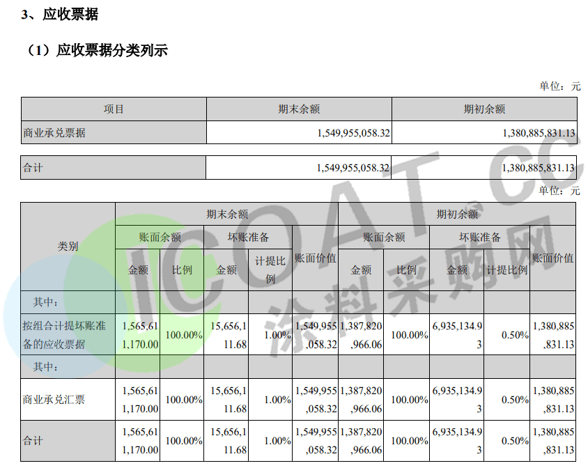 據涂料采購網了解,這種情況在涂料、原材料等化工產業鏈企業身上并不鮮見。多家涂料行業上市公司財報中公布的應收票據數額均較大。部分企業已將這部分票據計提壞賬準備,或轉入應收賬款。