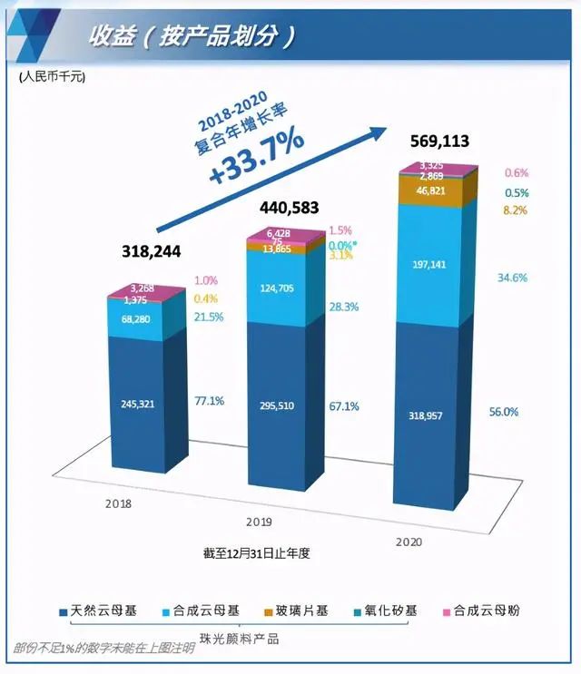 從收入結構來看,2018年—2020年,合成云母基在營收中所占的比例不斷擴大,從2018年的21.8%增至2020年34.6%。合成云母基現在成為帶動公司業績增長的主引擎之一。