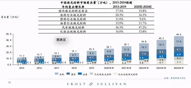 弗若斯特沙利文預計2020-2024年國內對珠光材料的需求將繼續保持增長態勢,特別是在合成云母珠光材料代表的高端市場。