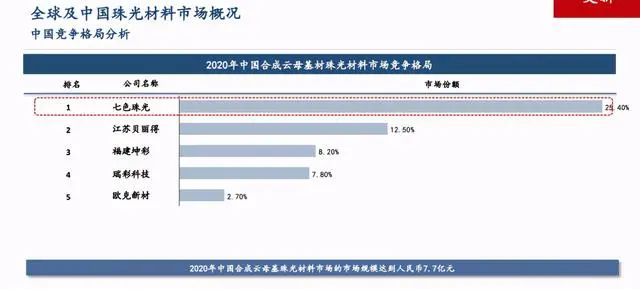 珠光材料市場相對分散,環球新材作為中國最大合成云母生產商,其占據市場份額較高,龍頭地位突出,在資金、技術專利、客戶關系上都有一定的經濟規模優勢。