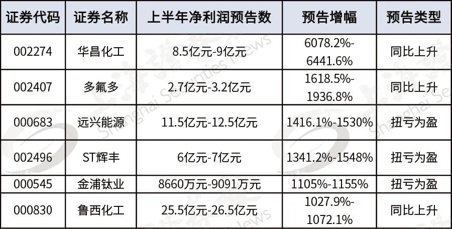 值得一提的是,在已披露業(yè)績(jī)預(yù)告的公司中,有6家公司今年上半年凈利同比增幅超過10倍,其中華昌化工、多氟多、遠(yuǎn)興能源位列前三。在二級(jí)市場(chǎng),華昌化工、遠(yuǎn)興能源年內(nèi)股價(jià)已翻番,多氟多年內(nèi)漲幅超過87%。