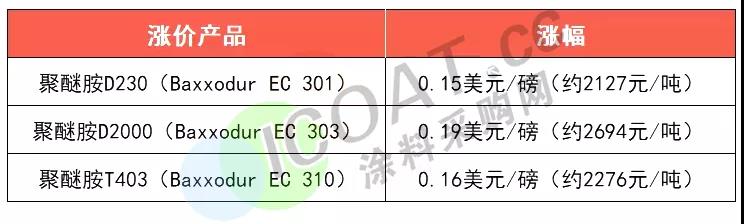 巴斯夫:自7月10日起,將提高北美地區Baxxodur®聚醚胺的價格。