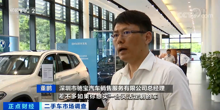 深圳市馳寶汽車銷售服務有限公司總經理 董鵬:這個月份部分現車資源就少,非常緊缺,如果你想買一臺靈活定制的車可能需要三個月,標配的車型可能要1-2個月時間。
